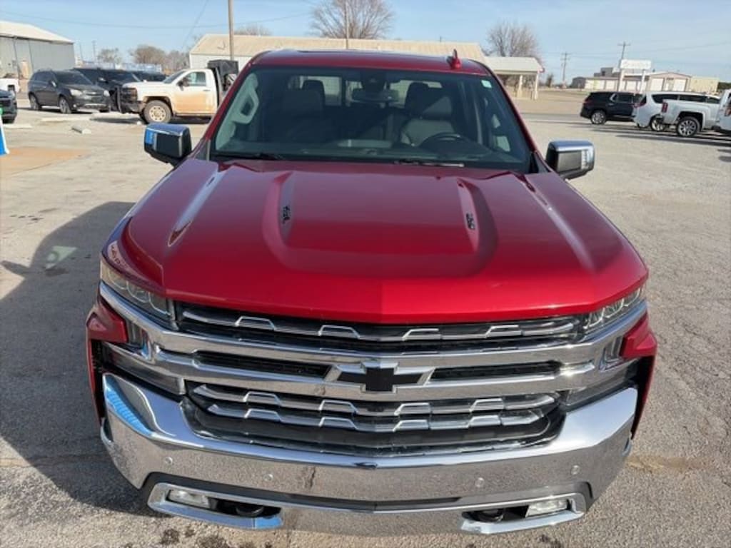 Recent Arrival! Odometer is 44908 miles below market average! Priced below KBB Fair Purchase Price! Clean CARFAX. CARFAX One-Owner. Cherry Red Tintcoat 2021 Chevrolet Silverado 1500 4D Crew Cab LTZ 2 USB Ports (First Row), Black Name Plates (LPO), Dark Essentials Package (LPO), Floor Mounted Center Console, Heated front seats, Lane Change Alert w/Side Blind Zone Alert, LTZ Convenience Package, LTZ Plus Package, Memory seat, Perforated Leather-Appointed Front Seat Trim, Perimeter Lighting, Power driver seat, Power Sliding Rear Window w/Rear Defogger, Power Sunroof, Rear Cross Traffic Alert, Rear Dual USB Charging-Only Ports, Safety Package, Steering Wheel Audio Controls, Ultrasonic Front & Rear Park Assist, Universal Home Remote, Ventilated Driver & Front Passenger Seats, Wheels: 20 x 9 Polished Finish, Wireless Phone Projection. EcoTec3 6.2L V8 15/21 City/Highway MPG 10-Speed Automatic 4WD