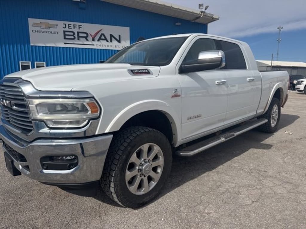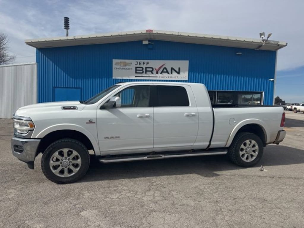 Recent Arrival! Odometer is 35748 miles below market average! Clean CARFAX. Bright White Clearcoat 2022 Ram 3500 4D Mega Cab Laramie 20 x 8 Polished Aluminum Wheels, Auto High Beam Headlamp Control, Center Hub, Chrome Appearance Group, Chrome Belt Moldings, Chrome Exterior Mirrors, Chrome Tow Hooks, Exterior Mirrors Courtesy Lamps, Exterior Mirrors w/Heating Element, Exterior Mirrors w/Memory, Exterior Mirrors w/Supplemental Signals, Foam Bottle Insert (Door Trim Panel), Laramie Level A Equipment Group, Mirror Running Lights, Mirror-Mounted Aux Reverse Lamps, Power Adjustable Convex Aux Mirrors, Power Adjustable Pedals w/Memory, Power Chrome Tow Mirrors w/Convex Spotter & Memory, Power-Folding Mirrors, Quick Order Package 21H Laramie, Rain Sensitive Windshield Wipers, Remote Tailgate Release, Trailer Tow Mirrors. 6.7L I6 Aisin 6-Speed Automatic 4WDBuy with confidence that your paying a fair market price for any of our pre-owned or new vehicles based on our comparison of all vehicles for sale in the entire United States. We strive to be the most competitively priced and will share the market data to prove it.Jeff Bryan Chevrolet LLC. In Kiowa is ready to serve Enid, OK with a full-line of Buick and Chevrolet vehicles. We take pride in helping you find the one that's right for you. We have a huge inventory of Chevrolet and Buick vehicles for sale. Whether you're looking for a new or used car, our sales team can help with its no-pressure philosophy. We also serve Enid, OK and Wichita, KS Chevrolet & Buick drivers. Let us show you what a great Chevrolet and Buick dealer should be. We will make your car-buying experience efficient and stress-free. Call Jeff Bryan (owner) today at (620) 206-4070 to schedule a test drive or if you would like specific driving instructions, then please visit our hours and directions page. We feel proud to serve your Enid, OK Chevrolet and Buick customers. OUR FIVE STAR REVIEW COMMITMENT Jun 16, 2017 Jeff knows exactly what he is doing! I was initially attracted to the dealership due to the pricing but the personal involvement and sincere commitment to ensuring the customer is satisfied was nothing short of outstanding! This will be the first place I look for my next vehicle. David W. Maize.
